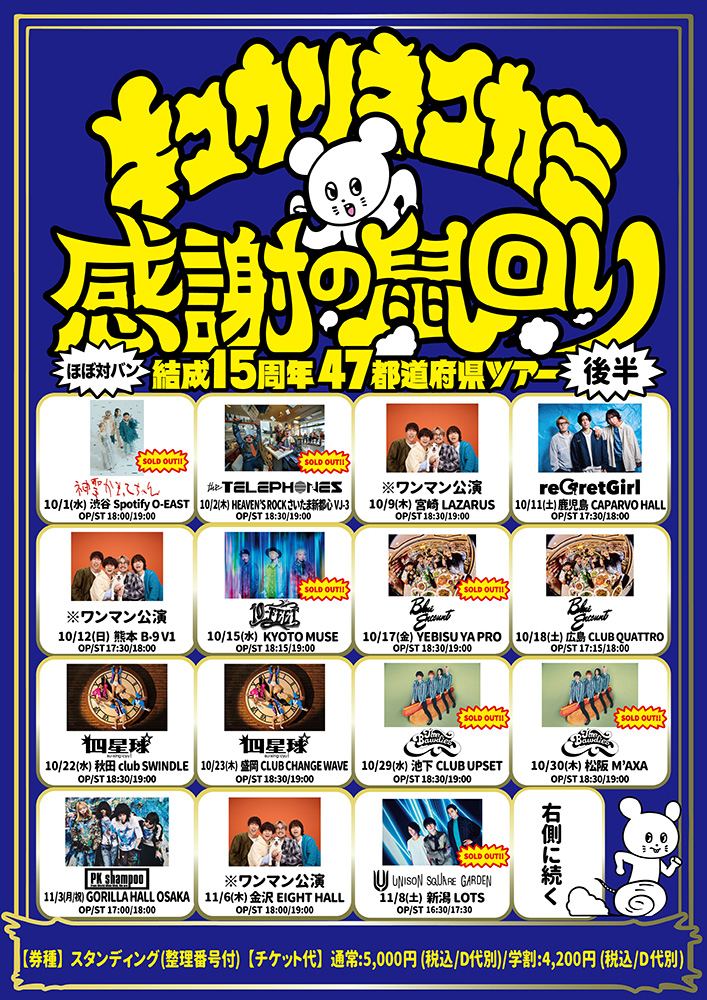 TEL:086-231-353110.18(土) 17:15 / 18:00 広島 広島CLUB QUATTRO YUMEBANCHI(広島)