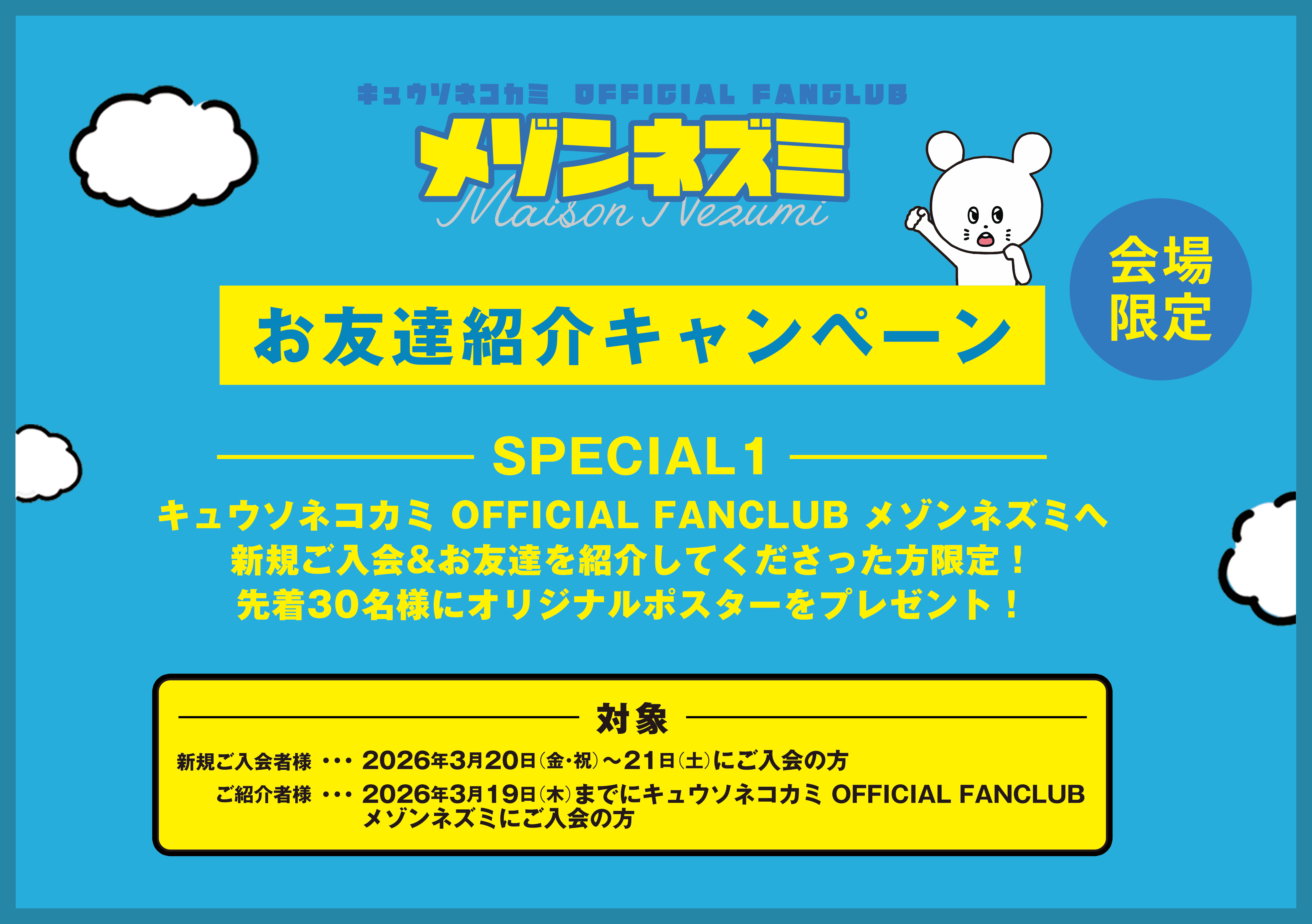 ご紹介者様:2026年3月19日(木)までにキュウソネコカミ OFFICIAL FANCLUB メゾンネズミにご入会の方