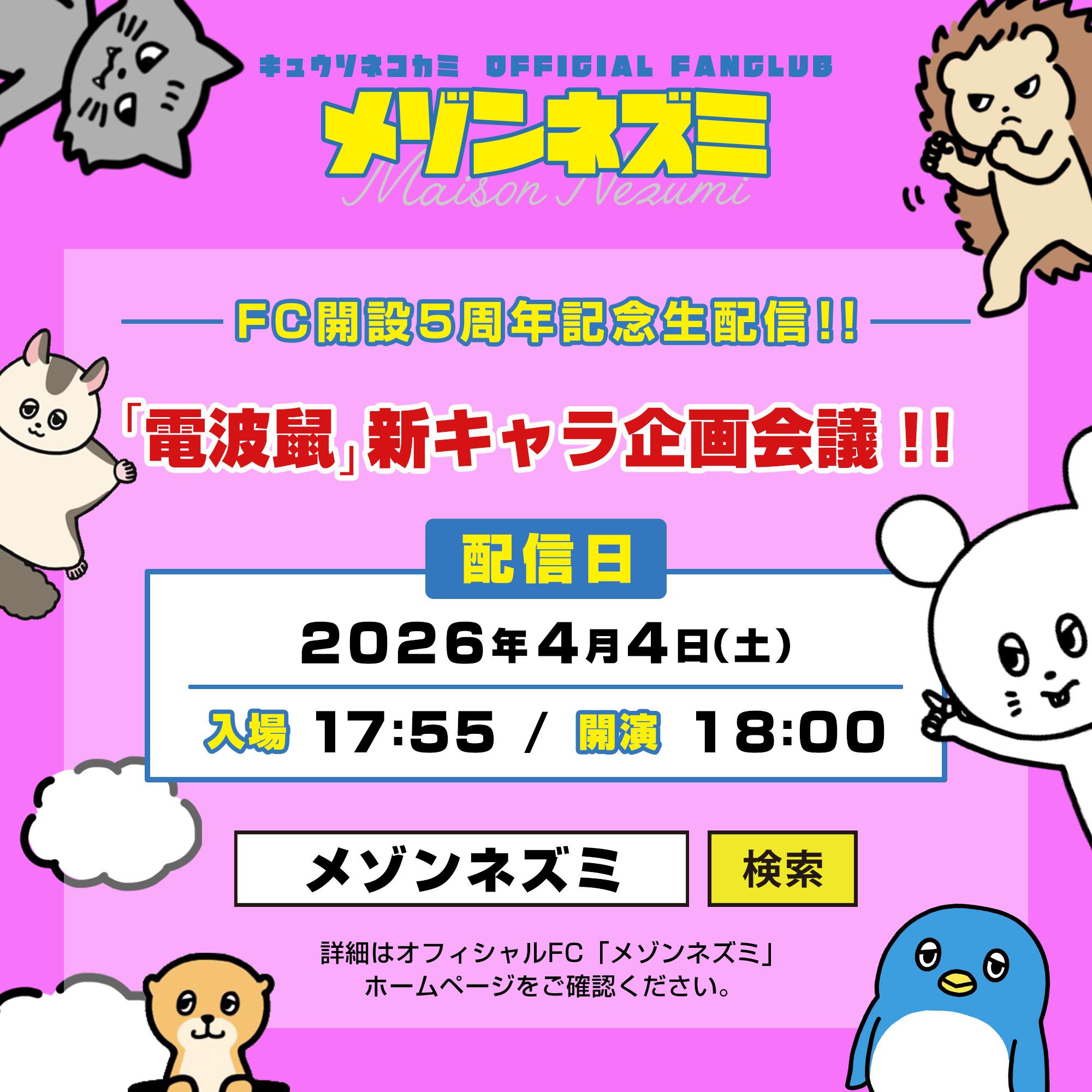 4/4(土)18時〜『メゾンネズミ「電波鼠」新キャラ企画会議!! 生配信』