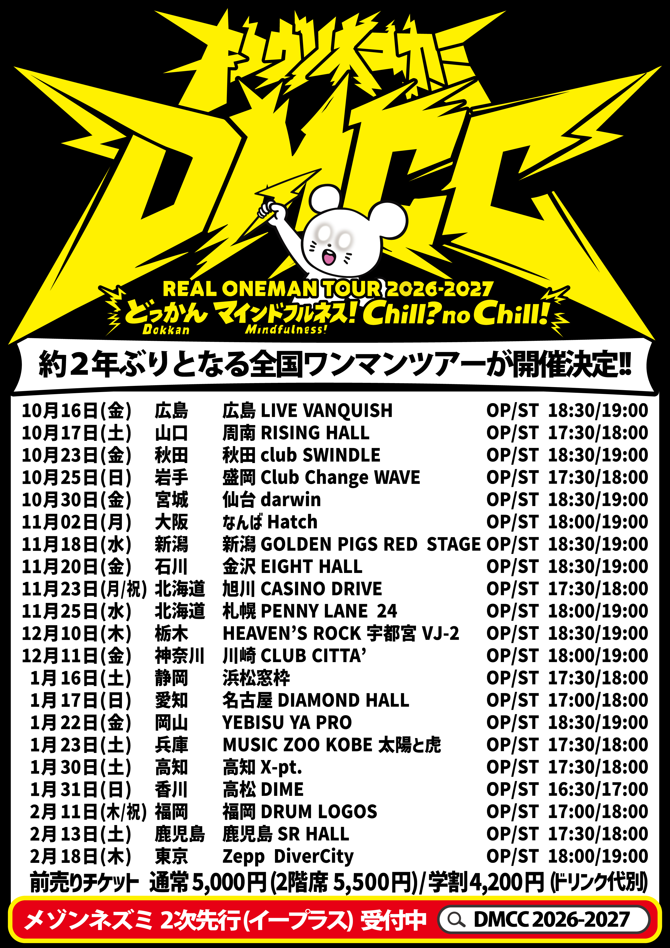 「DMCC REAL ONEMAN TOUR 2026-2027〜どっかん マインドフルネス! Chill? no Chill!〜」メゾンネズミ2次先行開始!